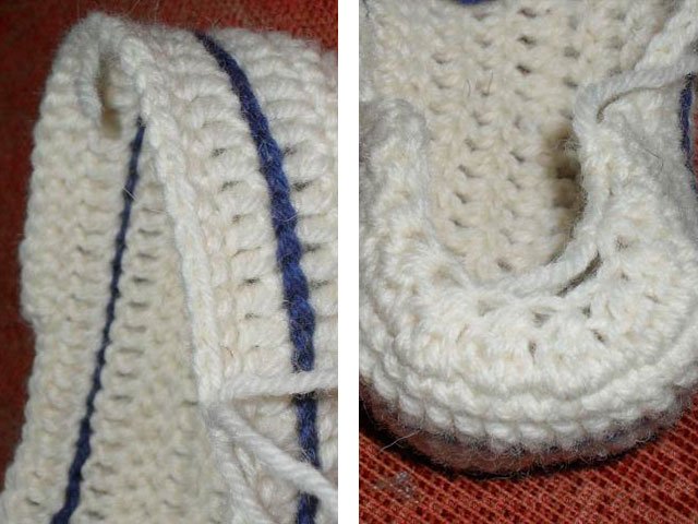 The sock is knitted from the front 30 loops. 1 row - single crochet, 2 - double crochet (3 loops and with one vertex). There should be 10 loops.