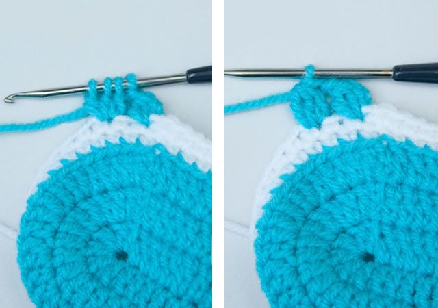tell me how to make these bumps, two half-crochets with a crochet in one loop or not?