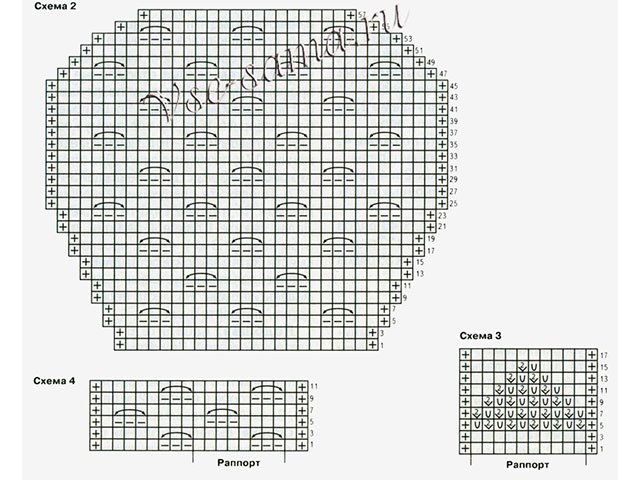 - Relief pattern: 6 R. handkerchief, 4 R. - openwork number 1, and so on until the end.