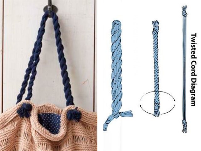 - Sew the bottom and sides together and make a pen as follows: 12 twist a thread of 200 centimeters from one end to the left, then fold it in half and tie it so that nothing unwinds. Someone can help you in this matter so that it is faster.