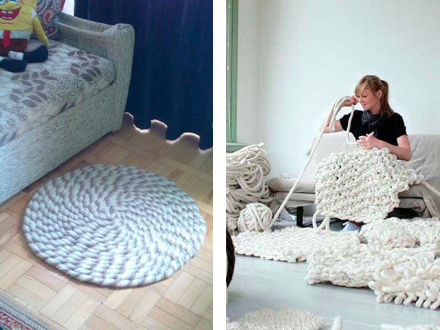 An original and inexpensive way to easily transform your room and interior is to create a do-it-yourself rug. Fluffy beautiful carpet will help to quickly transform your home. But the most important thing is that you can create it yourself: choose the size, color, pattern, technique so that the product has a unique character. Knitted mats with knitting needles can be bought at the store, but you must admit that creating it yourself is much more pleasant!