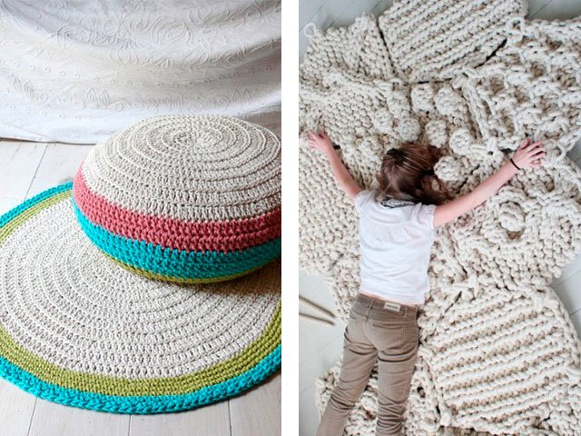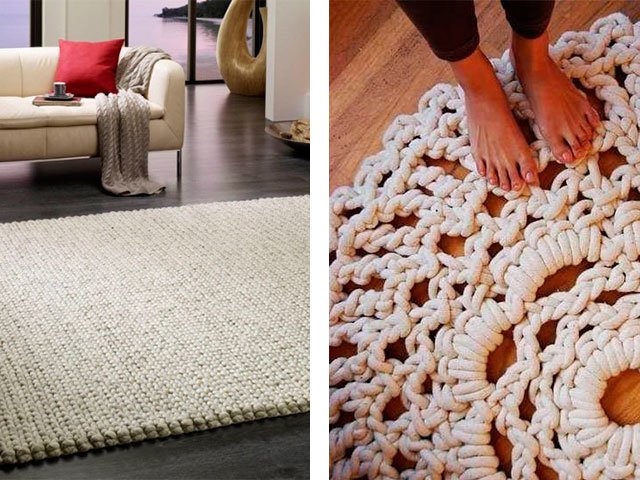 A beautiful rug made of thick yarn will look very good on the floor of a bedroom or living room. On it you can put a coffee table on top, lay it near the bed - it will decorate any floor! Make it simple.