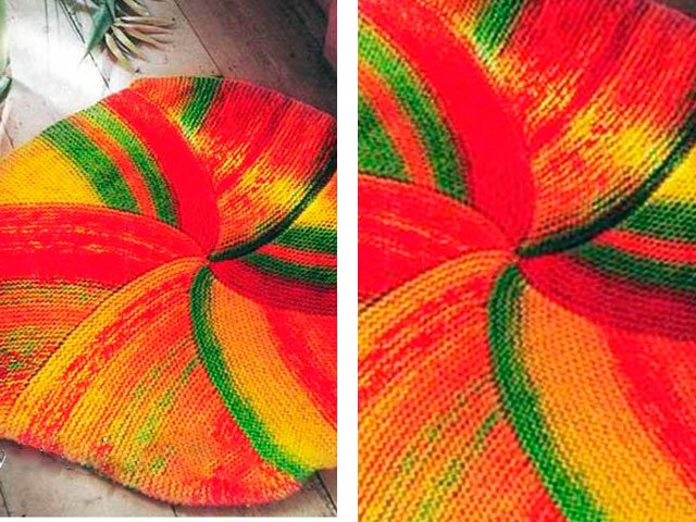 - 2.6 We knit a rug knitted in different directions with knitting needles
