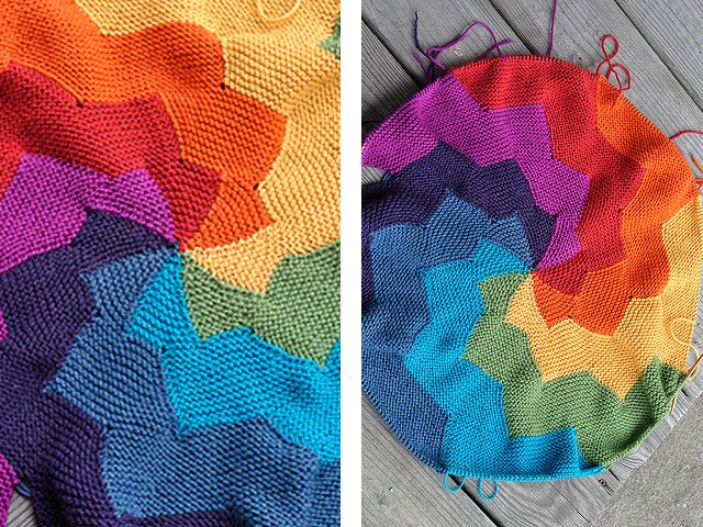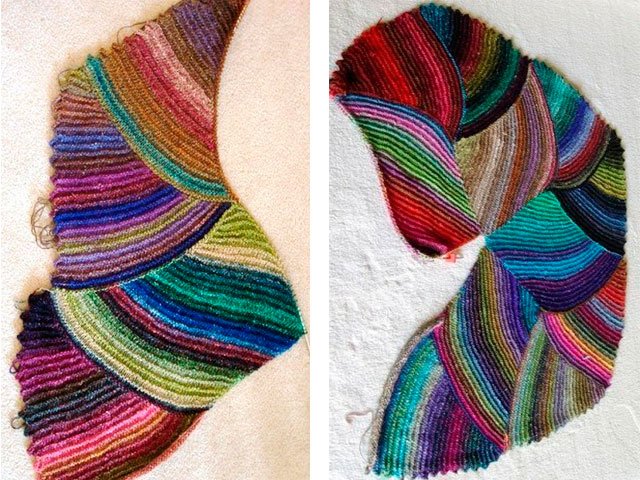 We knit a rug knitted in different directions with knitting needles
