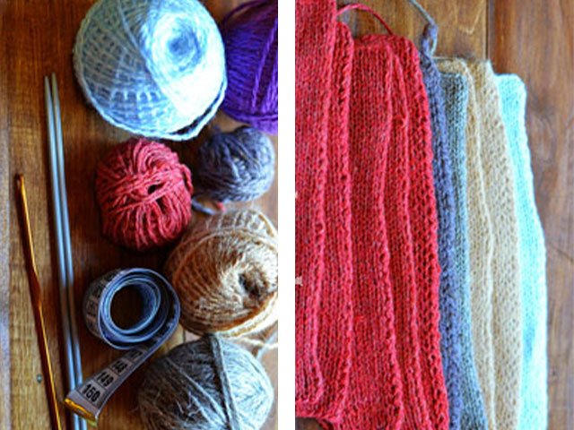 A variety of knitted rugs