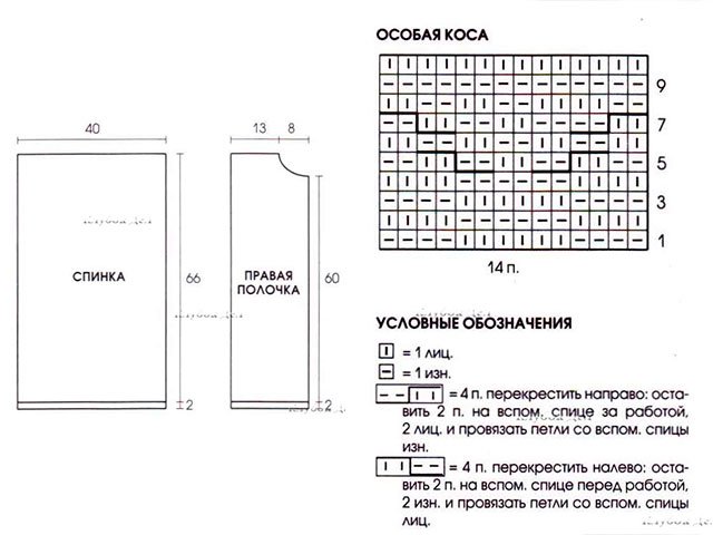 Special braid: width 14 p. Knit according to the pattern. Repeat from 1st to 10th p.