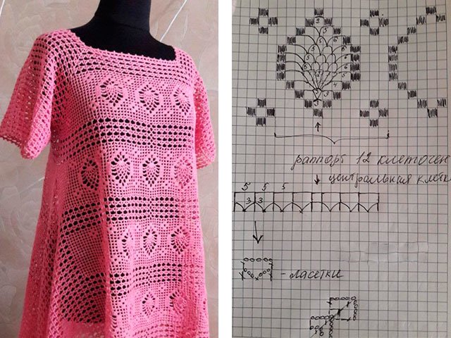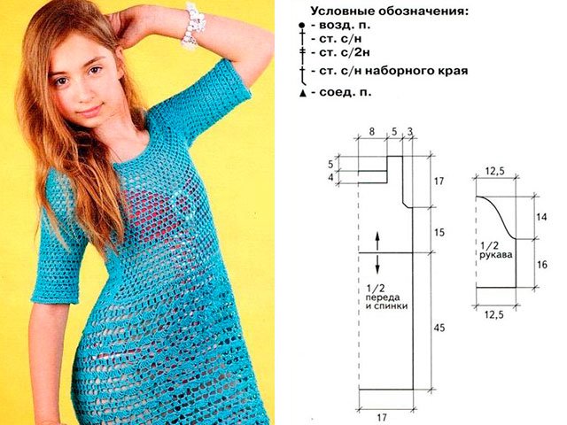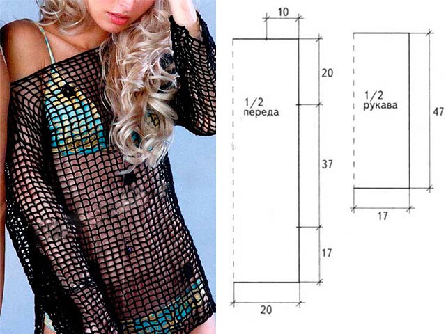 Fillet crochet is very simpleas we said, this is a great way for a beginner to improve his knitting skills. With this pattern, you can easily make a tunic for obese women, for girls, as well as for the beach. Fillet tops, T-shirts, sweaters look very good.