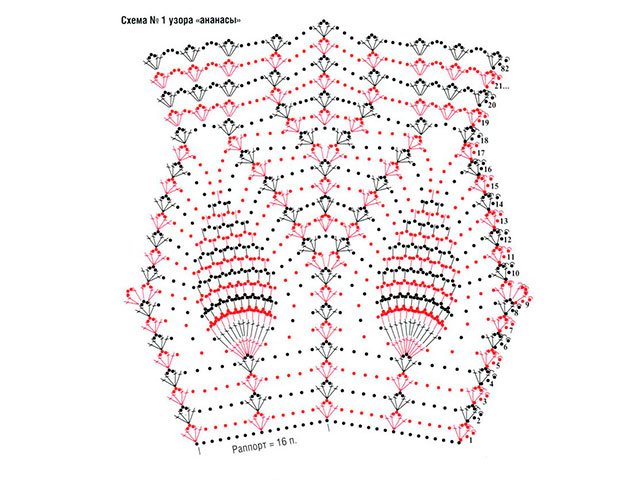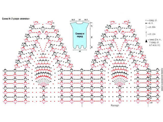 - 26 R .: close the back and front of the tunic in a circle, continue according to the scheme to 82 R. From 83 to 90 R. = C / X 2. Each pineapple done separately according to the scheme two (1 - 11 R.).