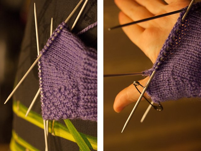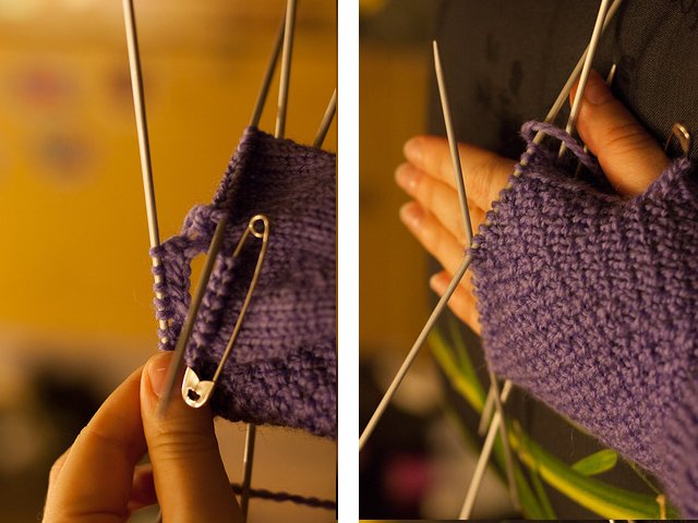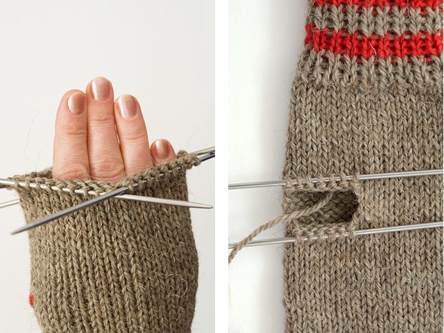 5. Go back to the thumb and knit according to the pattern;