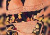 Additions: in the first row after two facial (5 increases), in the third front row - in front of individuals. And 1 out. (5 increases). Alternate options for increases. This will give an even extension of our turban hat.