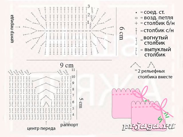 Sole: dial 13 v / p. in the chain. Knit 1-3 rows of the sole according to scheme 1.
