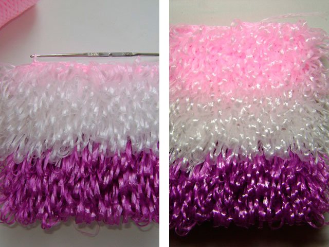 We knit in the same way (7 rows with single crochet, 7 rows with elongated loops).
