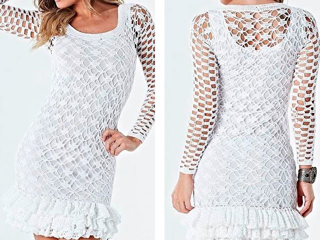 From squares and circles (from square and round motifs), craftsmen create dresses that are suitable for the beach. White beach with an open back - a summer classic, which is suitable for full and petite ladies. In other words, the most successful clothes for a hot summer are openwork tunics, so I propose to start a master class on their creation.