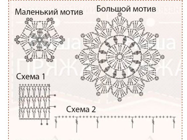 Belt: knit 6 motifs according to scheme 2. Connect the motifs with a strip, connect them to the main canvas as in the photo. Connect in a circular row.