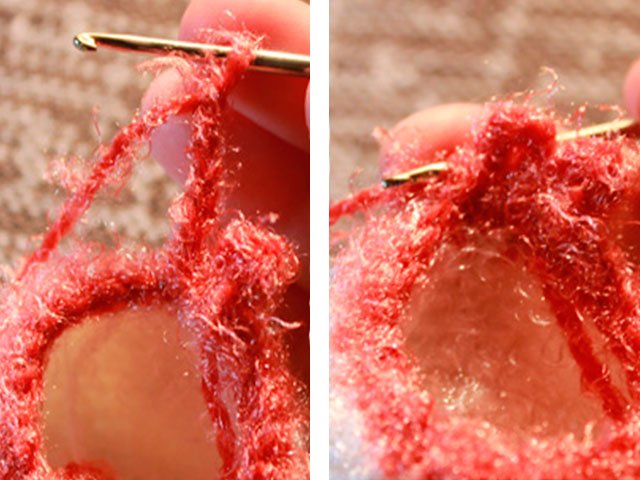 - 16 R.: (2 S.B.N. together, 4 S.B.N.) - repeat. After that, close and fill with filler.