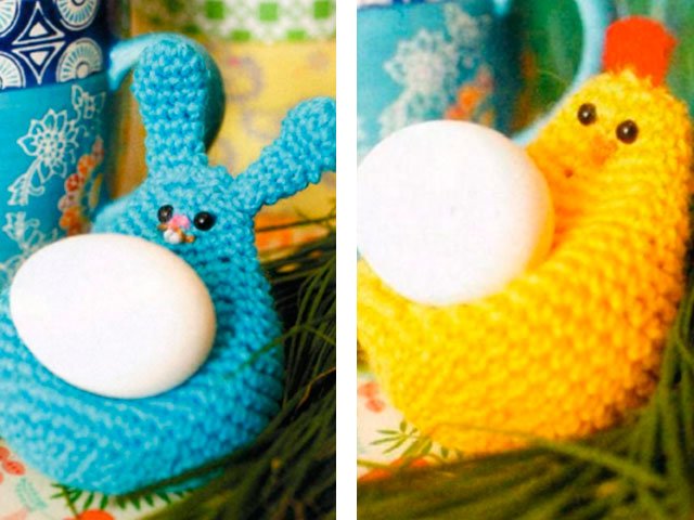 Easter egg stand: bunny. We will do it with blue yarn, you can replace it with any other color. To get started, wrap the thread around the finger and tie this ring 10 S.B.N. We continue to knit a tightened ring in a spiral.