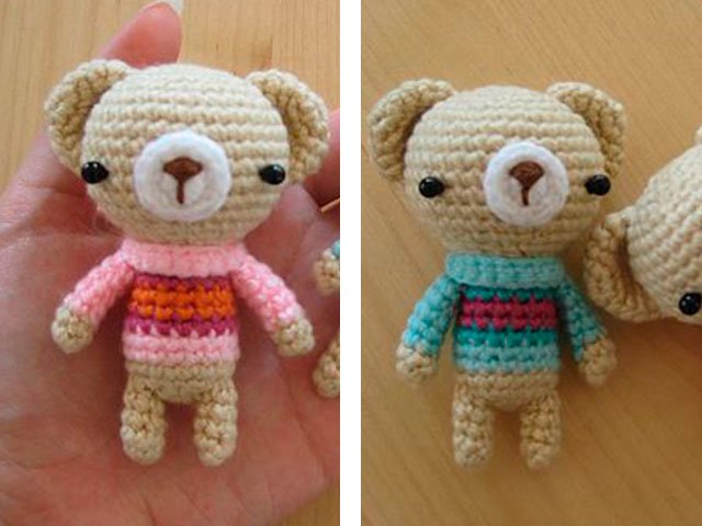 Cute soft bears in striped sweaters are what you need in the cold autumn season! We took the remnants of yarn for this work, because the bear will turn out really very small. Black small beads for the eyes, they can be replaced with buttons or embroidered with thread. But threads will still be needed for the nose. Of course, we have not forgotten about the filler - it is necessary to stuff the resulting toy with something. The hook for such a product is 2 mm.