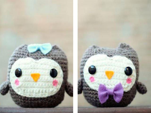 You can also make a beautiful gift for your boyfriend or couple in love, tying two cute owls. We used two colors of yarn: taupe and beige, felt, eyes, buttons, hook, thread, glue gun.