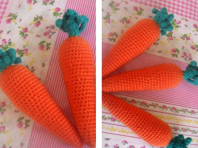 We attach the finished tops to the carrots. Carrot is ready!
