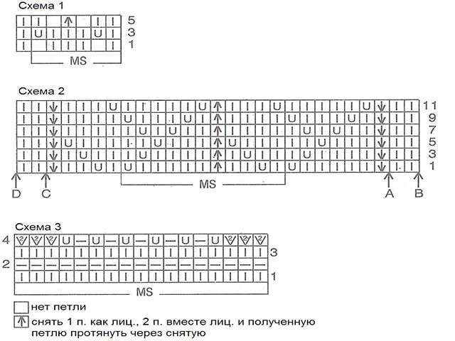 - Openwork: P.'s number is a multiple of 11 + 1 + 2 chrome. According to scheme 2 (here only L.R.), start with chrome. And P. from arrow A (B), repeat it constantly, finish with P. to arrow C (D) + chrome. Repeat pattern 1 to 12 R.