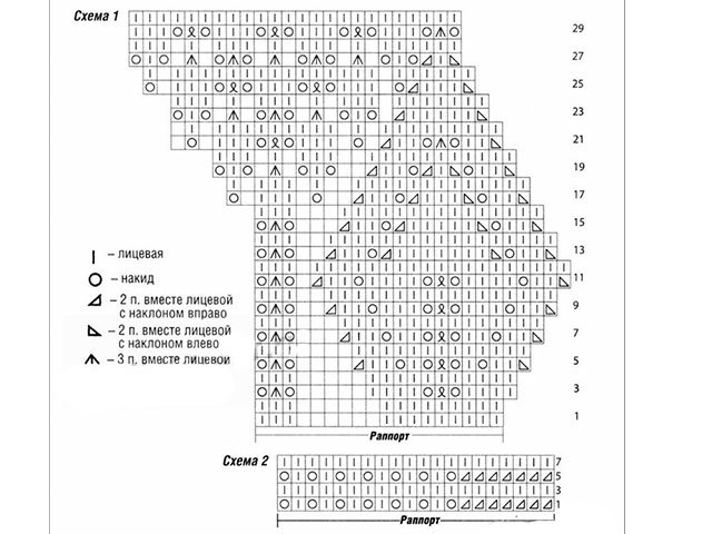 The scheme and description of knitting top with a round yoke. Only L.R. (diagram with leaflets). All I.R. do according to the drawing! With circular knitting - L.P., with double-sided - purl. Another important point, C / X starts at 3 R.