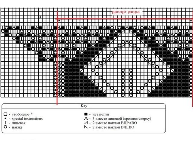 - Hole pattern: it is necessary to dial the number P. multiple 4 + 1 + 2 chrome. This pattern fits in with C / X 1, but do not forget that only L.R. In I.R. all loops and all yarn With 1 chrome. - repeat rapport. From 1 R. to 6 R. do 1 time, from 3 R. to 6 R. = repeat.