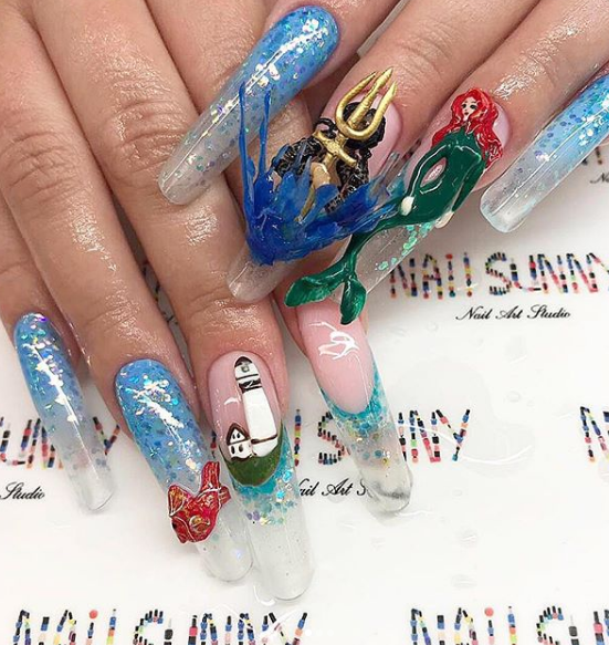 What girl in childhood dreams did not imagine herself a princess or a mermaid? Maybe it's time to dilute gray everyday life with bright and juicy figures on the nails? True, you should immediately get a housekeeper, and a stylist too, since you can hardly do anything useful with such nails yourself.