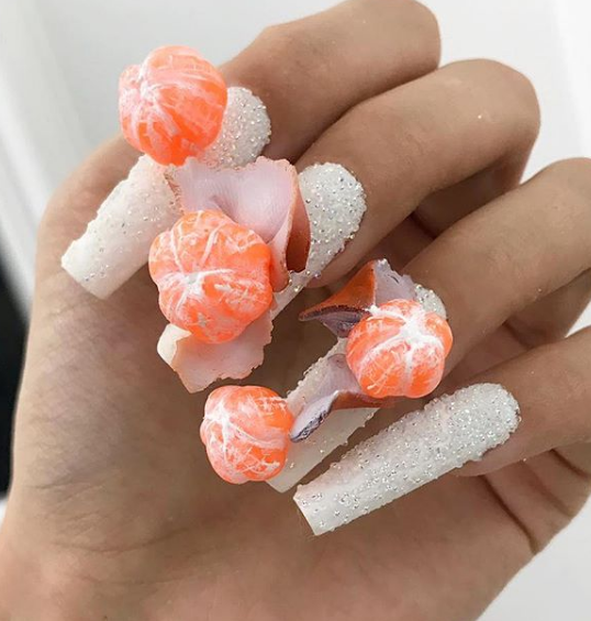 When the winter holidays are behind and the tree has already been put into the closet, but you really want to continue the banquet, do not deny yourself. A little juicy citrus on the nails and the smell of the New Year holidays will be with you all day. And also, if someone unexpectedly offers to drink champagne, there will be something to eat.