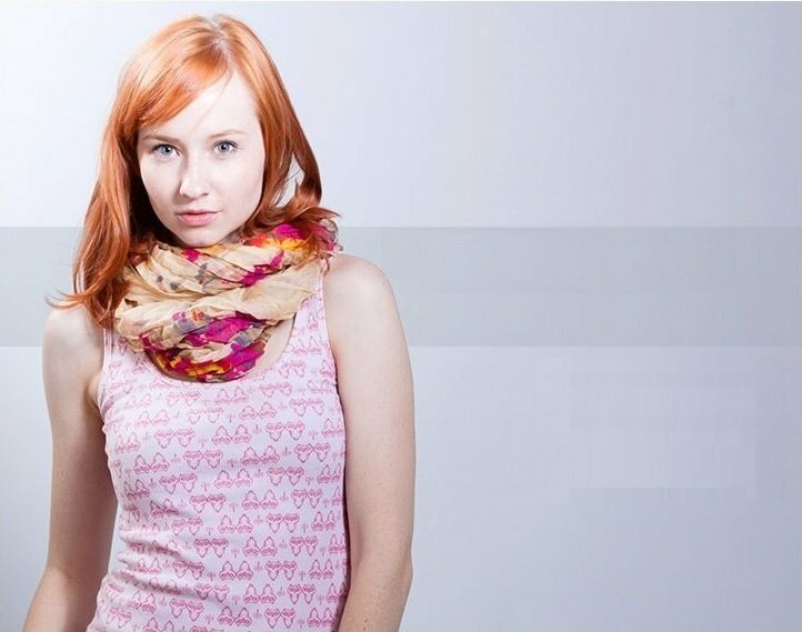 This method of tying a scarf favorably emphasizes the neckline and complements the image of a young girl.