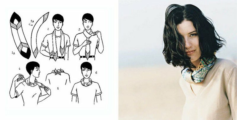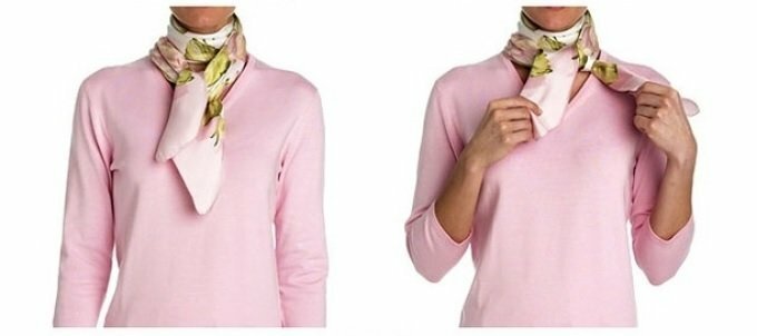 A neckerchief tied in such a knot will add a feminine look to elegance and French charm.