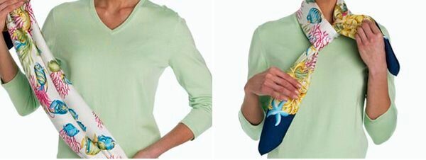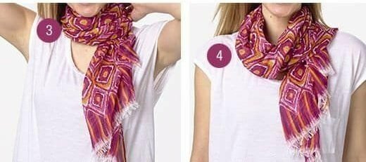 This method of tying a scarf is suitable for the fall or summer season. You can use a neck accessory in both plain and bright colors.