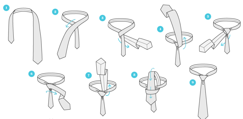 Thus, tying ties is nothing complicated. The main movements are simple and vary among themselves by the number of revolutions. With these simple instructions, you can easily learn to tie a tie with the most classic knots.