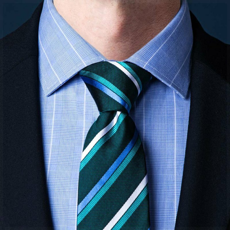 The lightest of the classic nodes is called the "semi-windsor".This is the first step towards truly sophisticated tie knots. A tie tied in this way is perfectly worn in everyday life, but arouses respect in society: a light classic with a twist.