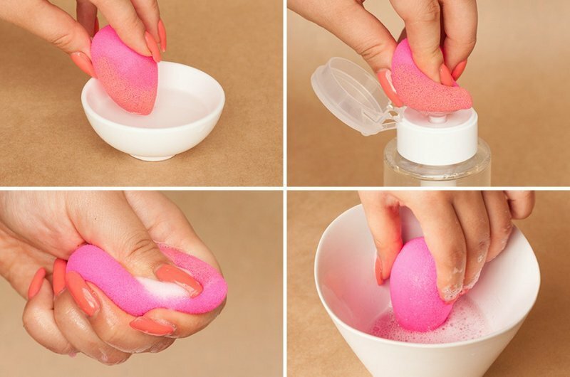 There are times when cosmetics are difficult to remove from the sponge. In this case, a thin layer of any body oil is applied to the sponge and soaked for 6-8 hours in a soap solution. This should help remove stubborn stains.