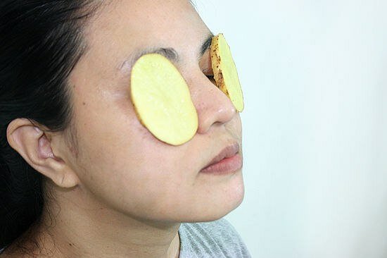 You can use ordinary potatoes. Cool boiled potatoes in their skins, cut in half and attach to the eyes. Homemade masks are quite effective if you have a bit more time. They will easily restore their former beauty.