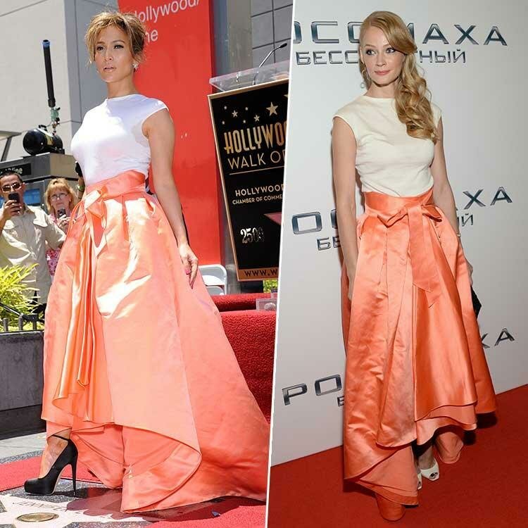 Celebrities, of course, try very hard not to repeat each other's fashionable images, but it happens that stylists miss this or that exit of colleagues in the shop. especially those that are far away. And as a result, we see equally dressed stars. And some even specifically repeat the images of idols.