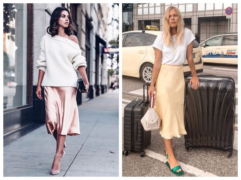 Also trending are leopard silk skirts and neon skirts. No, they do not look vulgar if you choose a neutral top. For example, a basic white T-shirt or silk top with straps of the same color is also suitable.