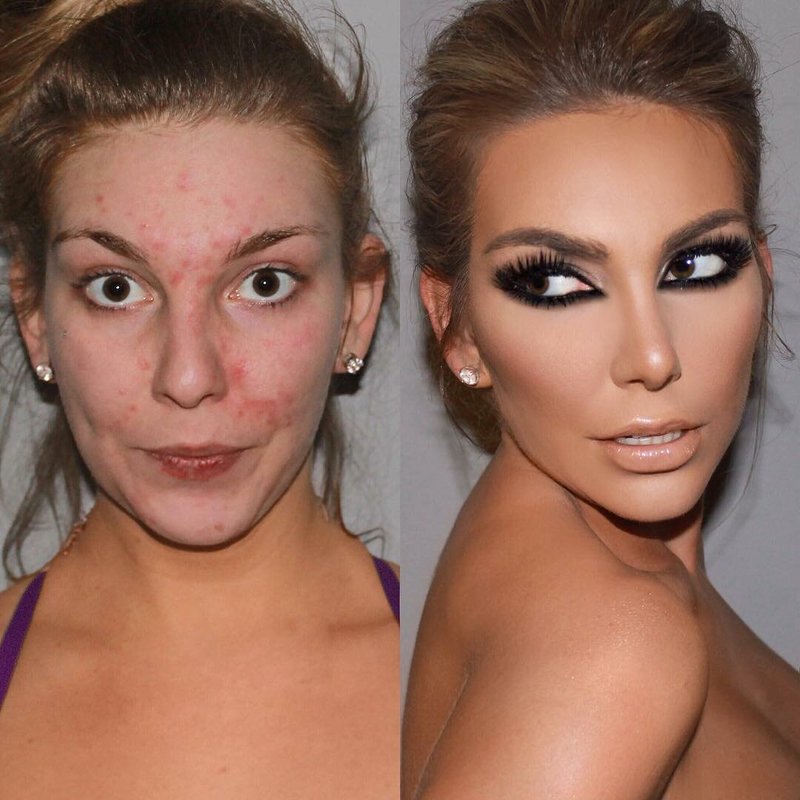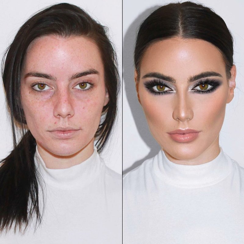 We have collected photos of women whom makeup artists have changed beyond recognition with the help of professional makeup. Is it possible that in such a context a “large layer of plaster”, as many say, has no right to exist?