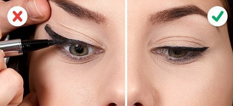Stretched eyelid. Many girls are mistaken, thinking that if you stretch the eyelid up, the arrow turned out to be perfectly traced. This causes the opposite effect. It will be smooth only in a tense position, when the skin returns to its true state, the line of the arrow will be uneven.