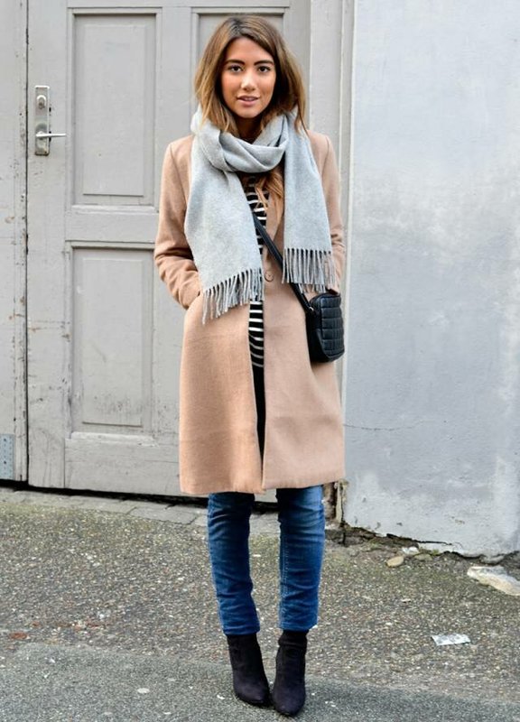 A lover of a coat of nude shade can complement the image with a scarf of any length and shade, since such outerwear is considered universal.