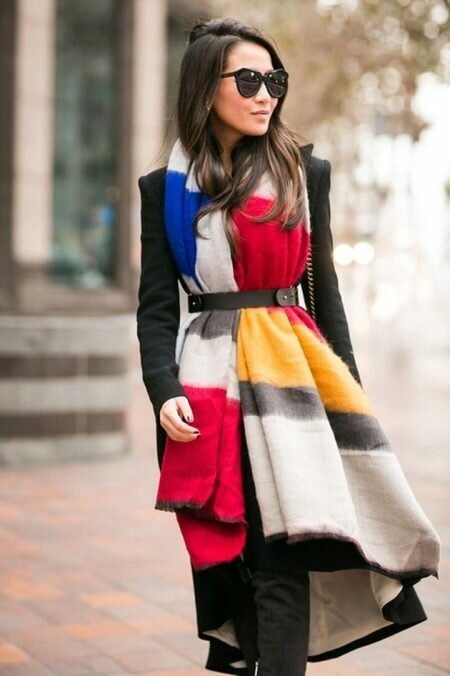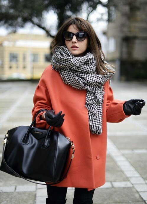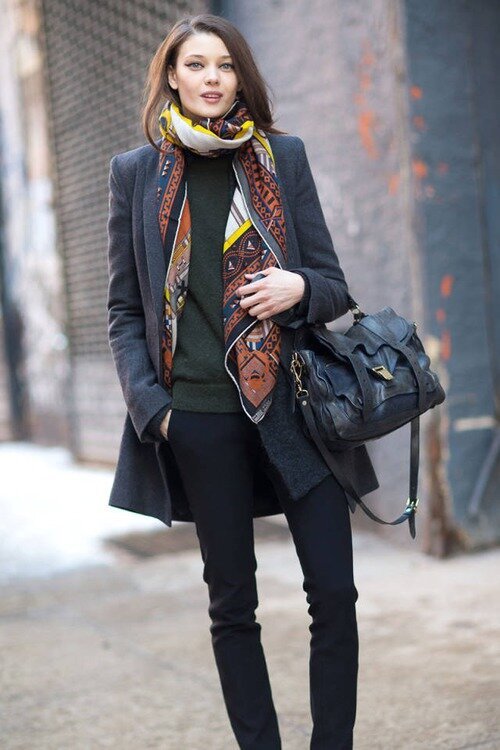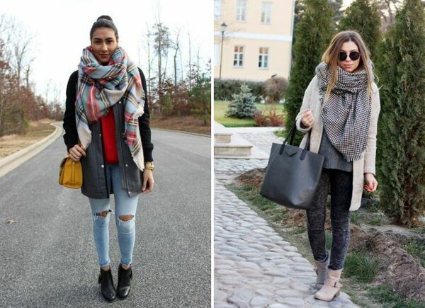 Now we offer a look at street-style images, where the scarf occupies a key position.