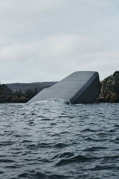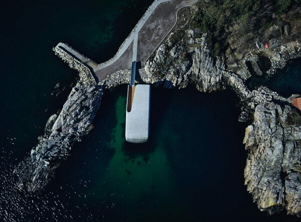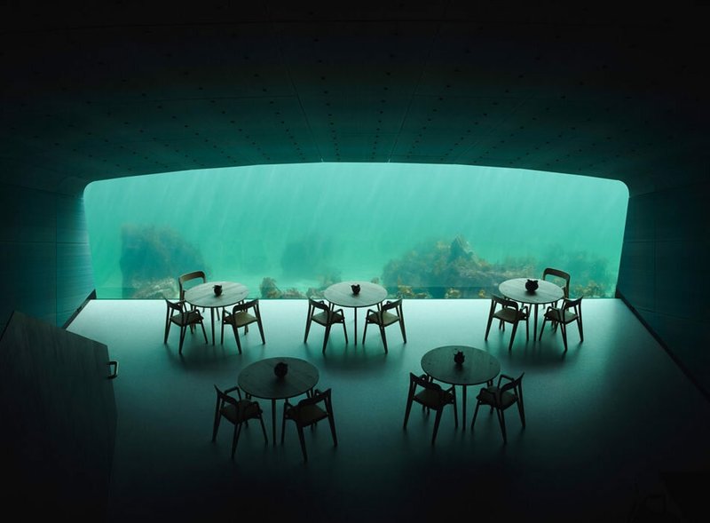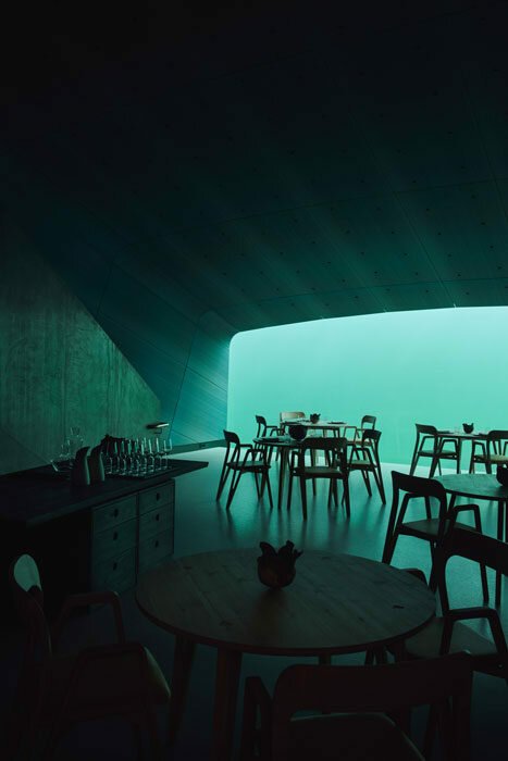 Outside, you can’t immediately understand what it is, because the structure itself is half immersed in the sea (5 meters deep). The creators of the project claim that they took everything into account, for example, a meter layer of concrete will protect the restaurant from the harsh climate. He is also responsible for the heat in the room.