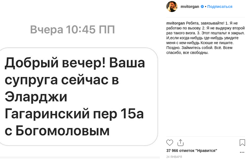 After the publication on Vitorgan's Instagram appeared, in which he asked to stop sending him messages about the whereabouts of Xenia.