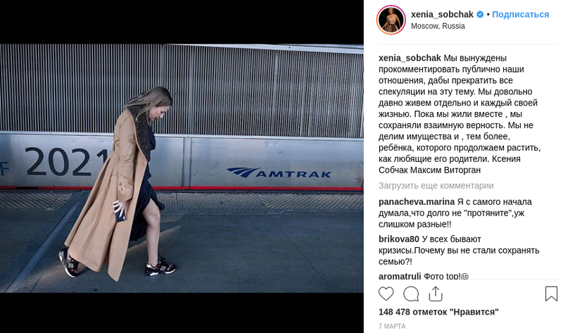 But fans of such a statement turned out to be few and many continued to believe that the couple would still manage to establish relations. the final point in history was put by Ksenia, who on March 8 published information about the official separation from her husband.