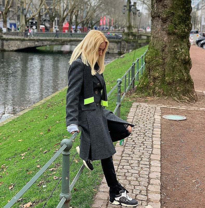 Coats and sneakers are a combination that everyone has come to terms with. Yes, and walking in this way is very convenient: you can go to a restaurant and sit in a park on a bench.