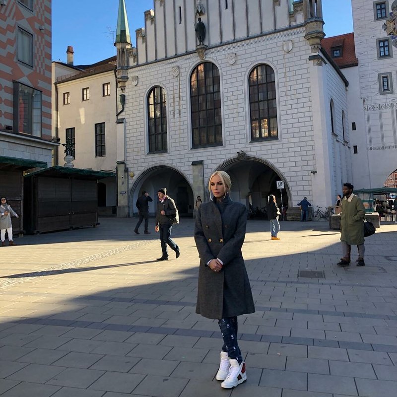 So, the first thing to remember - branded clothing should be in moderation. Lera does not go too far with luxury things, like Anastasia Kostenko. She knows that a catchy tracksuit is best complemented by an inconspicuous sleeveless jacket than with a catchy jacket or cap.