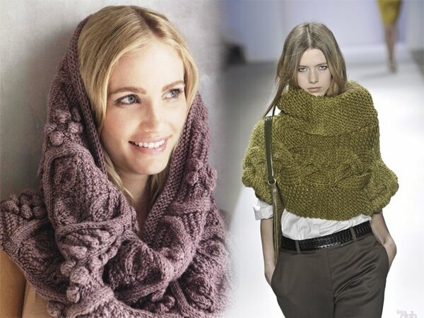 Snood is a beautiful and warm knitted scarf with connected edges. This so-called pipe can be of various sizes, densities, volumes and is made using a variety of patterns: from simple elastic bands to incredibly difficult braids and weaves. A closed scarf, also called a collar, can be dense and warm, and can be openwork and airy, depending on what season it is chosen for.