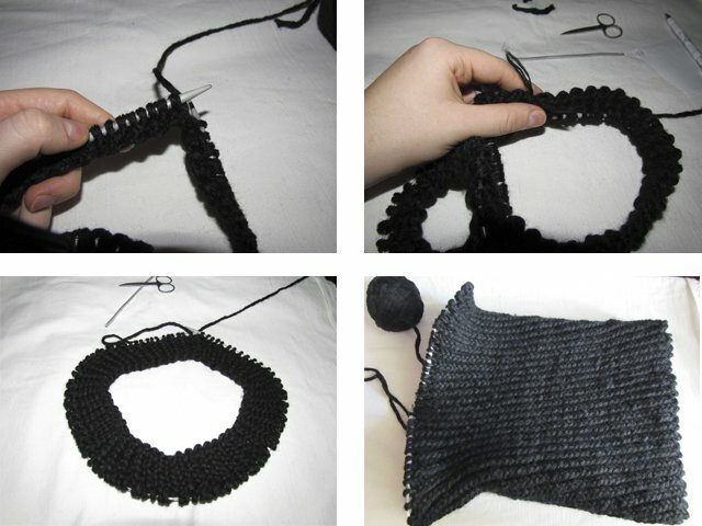 When there are only 2 loops left, we close the row, knit with a crochet column using a hook. Snood with an elastic band is ready. You can wrap it inward or double it.