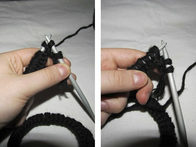 After the product reaches the required width, you need to close the loop. To do this, we knit 2 loops of the front, remove them, and then throw back on the left knitting needle.