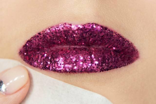Step 2: add glitter. On top of cream lipstick, add special glitter. It is recommended to choose medium-sized sparkles, too small ones will look like regular mother-of-pearl lipstick, and large ones will only spoil the makeup.